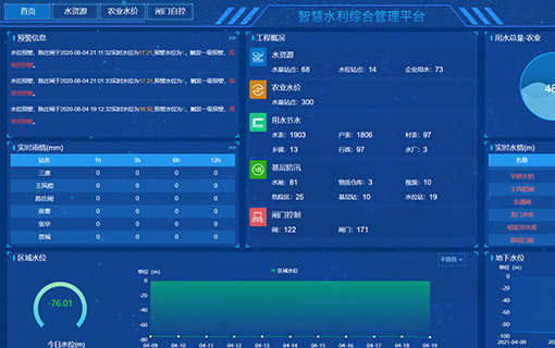 包括數據可視化、用水計量、GIS信息、統計分析、水權分配、水權交易、水費計收、節(jié)水回購、精準補貼、運維管理等功能。數據可視化:展示項目設施概況、設施運行狀態(tài)、用水總量控制、GIS、各鄉鎮村用水量、日報表、年報表。用水計量:實時遠程監(jiān)測機井、泵站、明渠等設施的運行狀態(tài)和實時數據。GIS信息:展示監(jiān)測點在地理信息系統的分布...